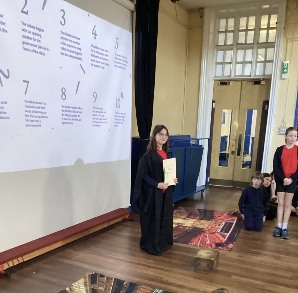We were fortunate enough to receive the Parliament Loan Box. It contained lots of items used in parliament and some activities for us to have a go at. We held debates, acted as the Speaker, talked about ideas for Bills and how the House of Commons and House of Lords works.