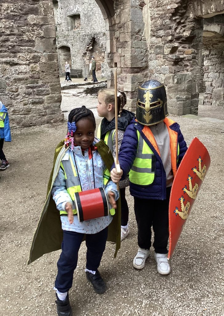 Year 1 and 1GS2 had a great time at Raglan castle this week. We explore the moat, kitchen, great hall, guest tower, gate house, courtyards and the great tower. We talked about how the castle had changed lots over the years. We loved getting in some of the many fireplaces, Oliver was on guard duty in the gatehouse, We talked about what it would have been like to try and attack the castle high on the hill and we had a great imaginary banquet in the great hall (with minstrels!) A massive thank you to all of our volunteers for helping us to keep the children safe during our visit.